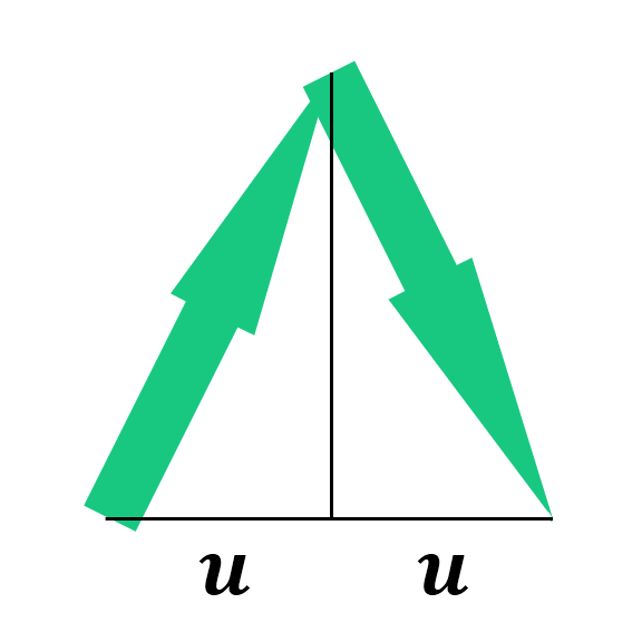 The total momentum is the sum of all vectors. In this particular case the x-position of the base of each vector changes by the amount of u. The total momentum will thus be P = 2u to the right.