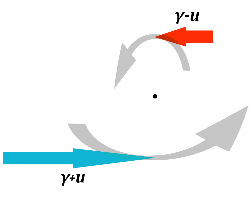 To explore the effect of movement, we can imagine two momenta rotating around each other - two "photons" being attached to each other. The MRM does not directly suggest that such constructions can form, but it is mathematically coherent with any form of buzzing and exchange of momentum between momenta. Mathematically, two momenta are just sufficient to form a relative velocity.