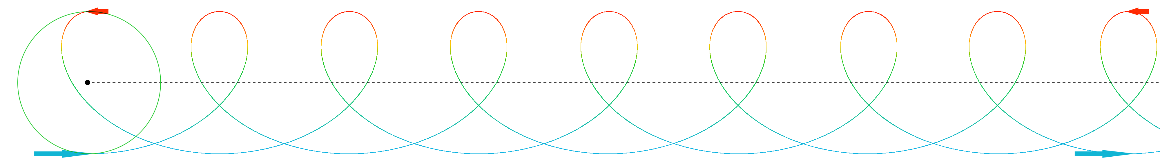 The simplest visualization of profound movement is to imagine two momenta that are rotating around each other. They are located at x = 0, rotating around the x-axis, into the paper or the screen. The two momentum vectors have equal size; let's say their energy, their magnitude, is 1 in any arbitrary unit. The compound as a whole has thus an internal energy (mass) of Eint= 2 in that arbitrary unit, and it remains stationary according to us.
