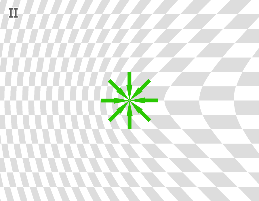 II. The compound is accelerated to u = 1. The compound will now experience a change in geometry as described by the IGS. The total momentum of the compound is still 0 because the image shows how geometry is interpreted by the compound itself. Compounds always regard themselves to be stationary - to have a balanced momentum.